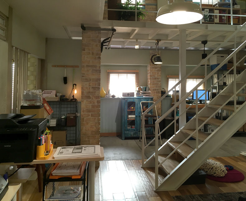 ▼ユリカとマコチが働くチロリアン不動産には、おしゃれなウッドブラインド♪