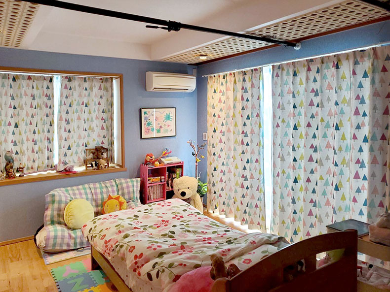 ▼子ども部屋のシーンにて、厚地は<ツリー カラフルピンク>。