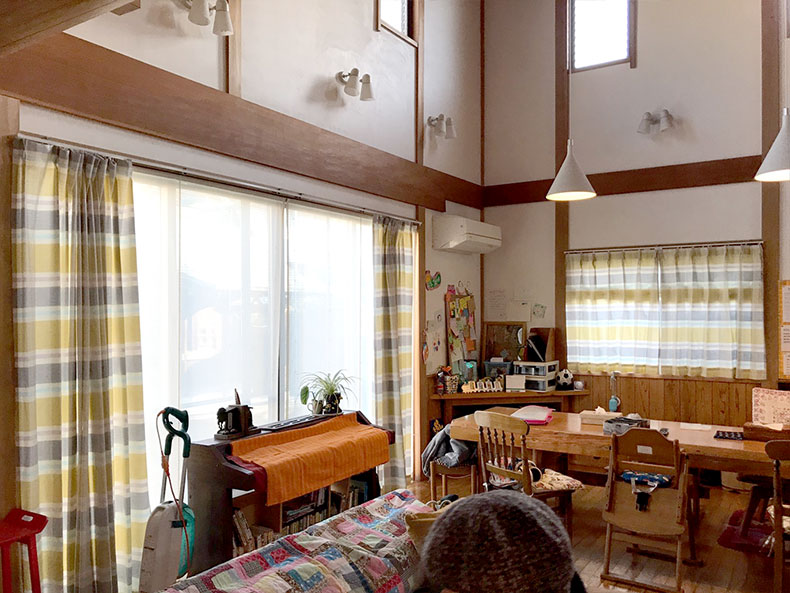 ▼こちらのシーンでの厚地は非遮光カーテン <ブリュム オーカー> (※販売終了)