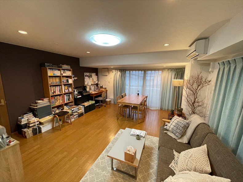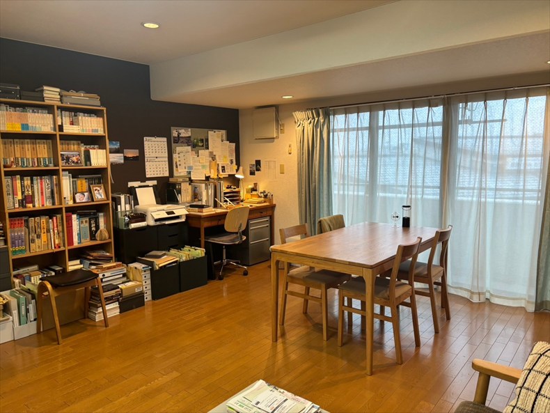 ライターらしい資料に囲まれたスペースもありつつ、ソファ周りはくつろぎやすいナチュラルな空間になっています。