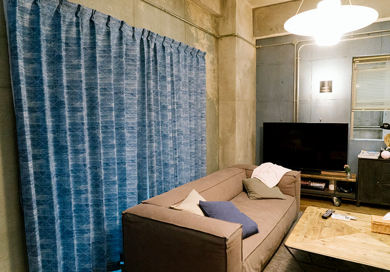 主人公の部屋に【 MARINE & PIER 】 自然がモチーフのデザイン遮光シリーズ<ルサック ブルー>をご使用いただきました。