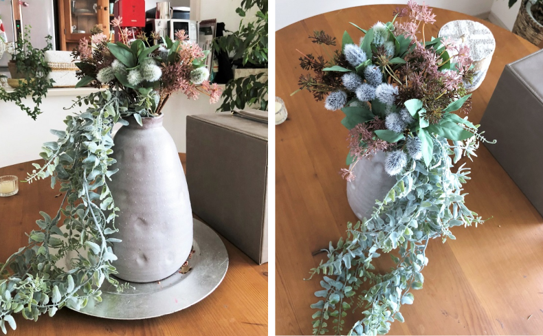 垂れ下がっているグリーンは他店で購入したものなのですが、にぎやかしに組み合わせてみました。