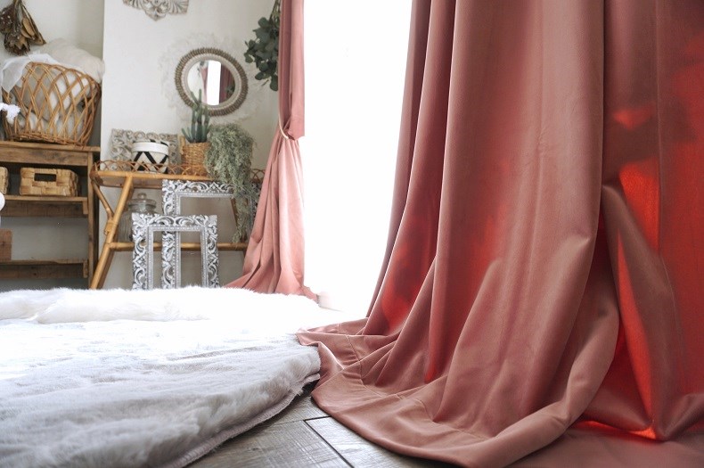 ■裾の長い【ブレイクスタイル】におすすめのエレガントなベルベットカーテン
