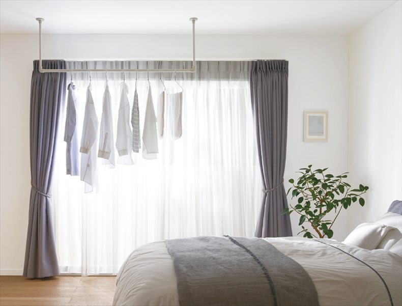 最近は、天井から吊り下げられる「室内用の物干し」などを設置されるご家庭も増えてきました。