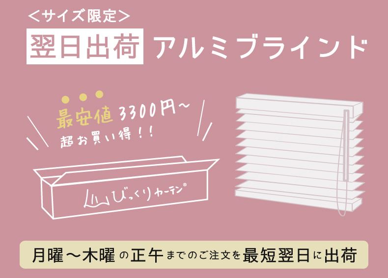 これまでも好評でした【翌日出荷カーテン】と【翌日出荷ロールスクリーン】に待望のブラインドも仲間入りです。