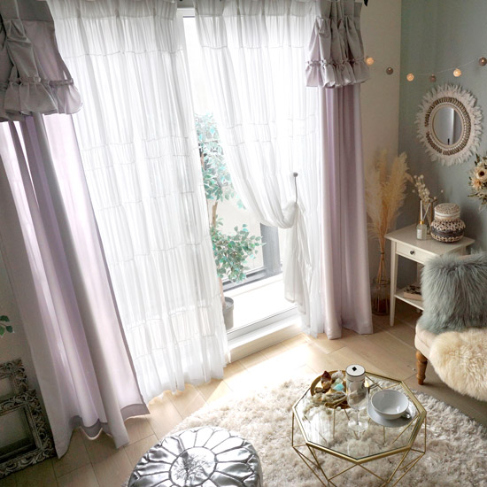 滑らかな生地が重なりあってふわふわと柔らかな印象がロマンティックなお部屋を演出してくれるレースカーテンです。