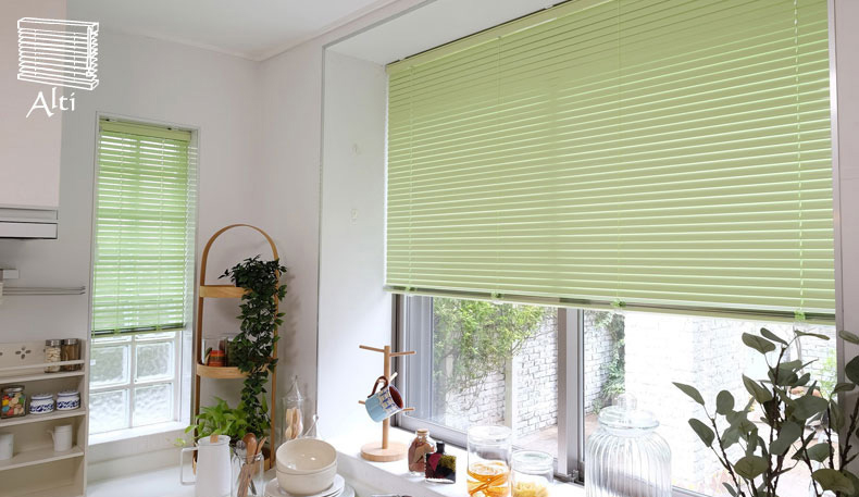 アルミ製のスラット(羽)に清潔感がありスタイリッシュな印象の窓装飾です。何と言ってもカラー展開が豊富で全65色からお選びいただけます。壁や建具に馴染むカラーやお部屋のアクセントになるカラーもご用意しています。