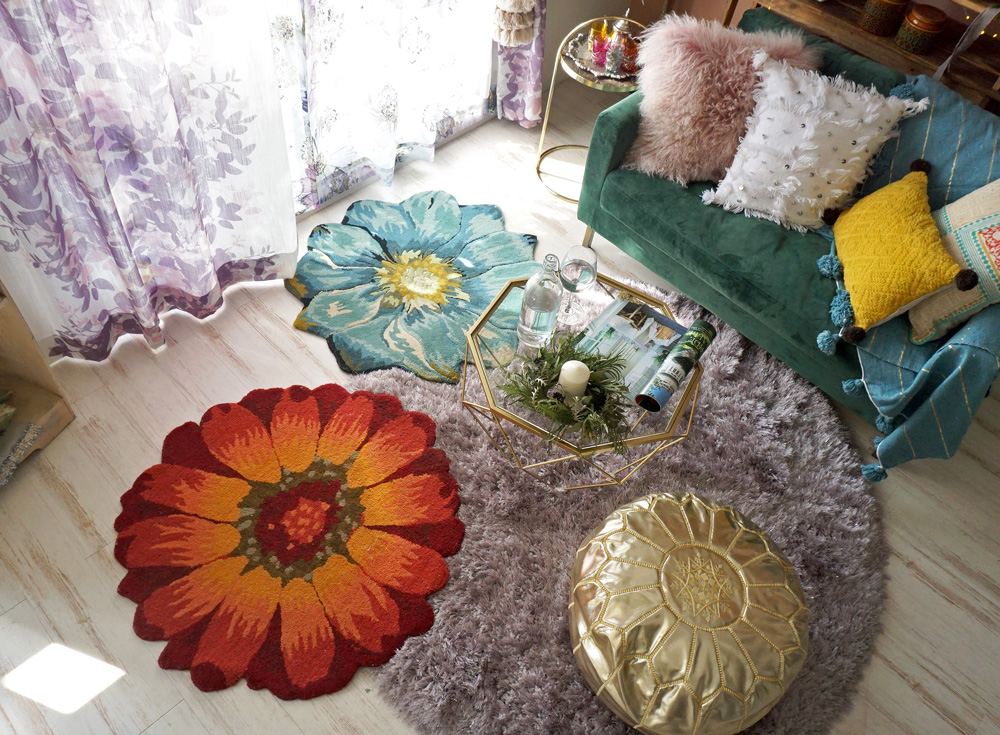 カーテンと一緒に大人気の花型ラグはいかがでしょうか?
