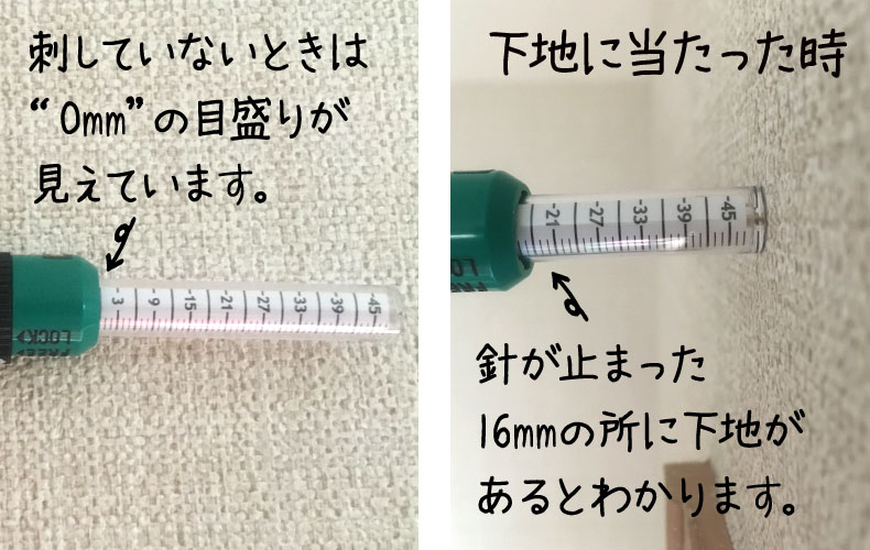 (1) 直接壁に針を刺して下地を確認する「針刺しタイプ」