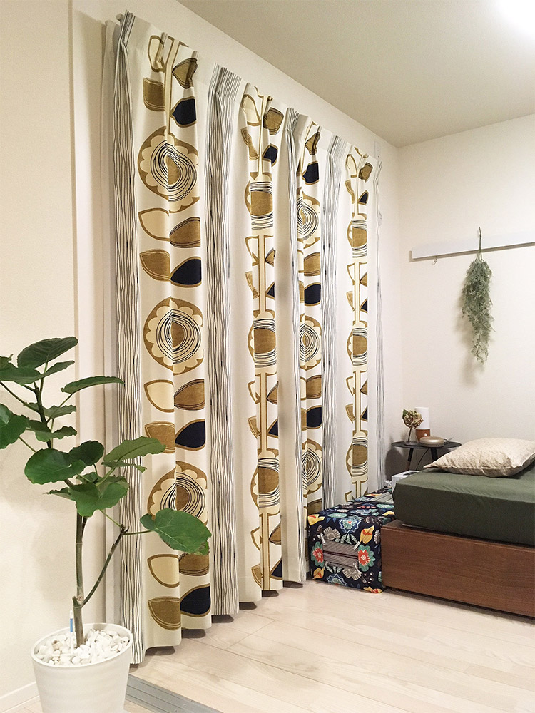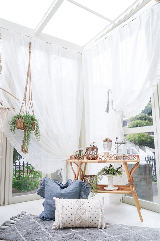 ドレープカーテンは少し低い位置で束ねて、大きくヒダを引き出すとふんわり優しい雰囲気になります。