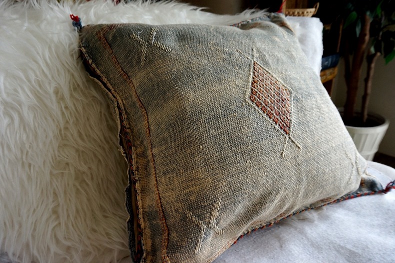 今回入荷のクッションカバーは、実際にラグとして手織りされたものをそのままクッションカバーにしておりますので、