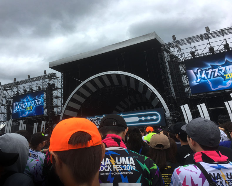 キュウソはステージに雨がたまるほど強く雨が降りましたが、途中からは小降りか曇りでした。