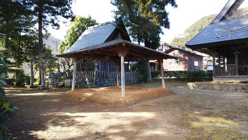 実家のちかくにある神社の境内です。真ん中にあるのは土俵で、