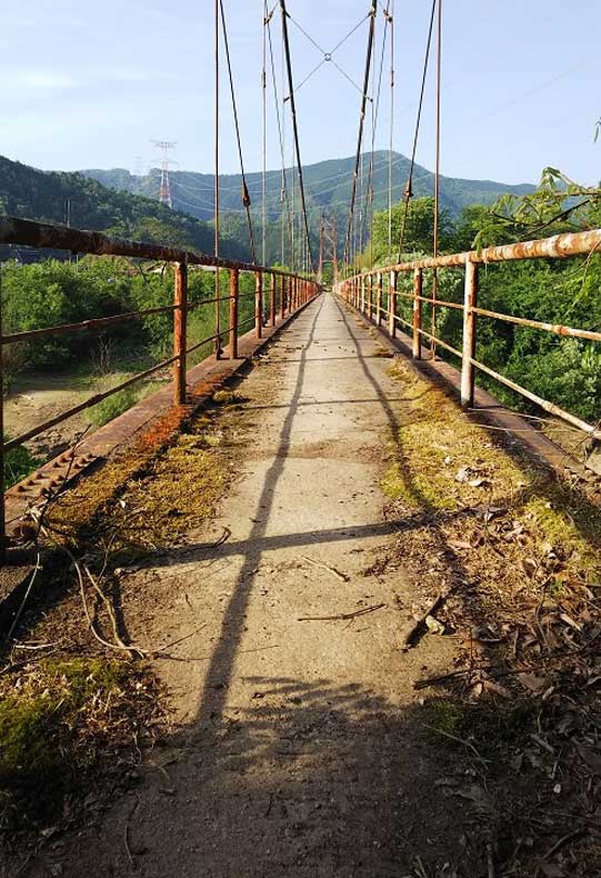うちの実家の田畑ある地域から向かいの山側にわたされた吊り橋です。