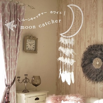 後ろに見える三日月型のドリームキャッチャーもバリ島で仕入れた本物のフェザーを使った手作りのもの。