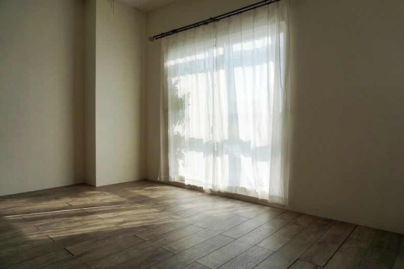 この、レースカーテン。オーガンジーをかけると透け感があってきれいです。