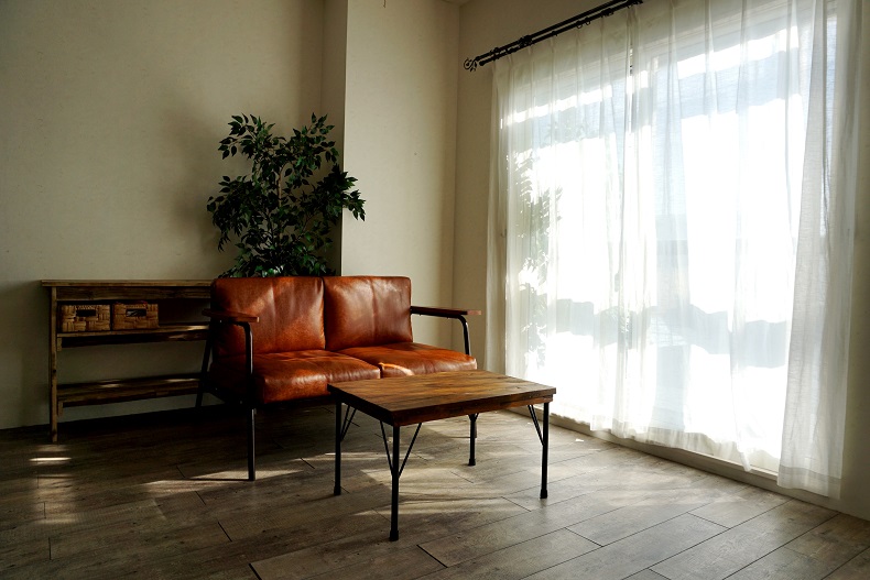 まずは限られた撮影用の家具を配置致しました。ここまでだとヴィンテージテイストのお部屋に見えますね。