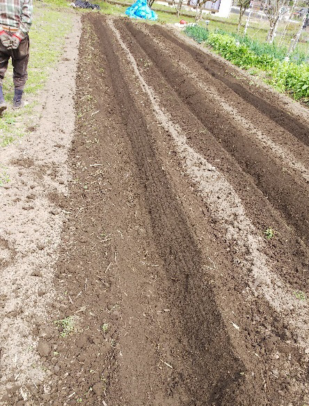 私がやるとゆがむからと言って、畝作りは父がやってくれました。