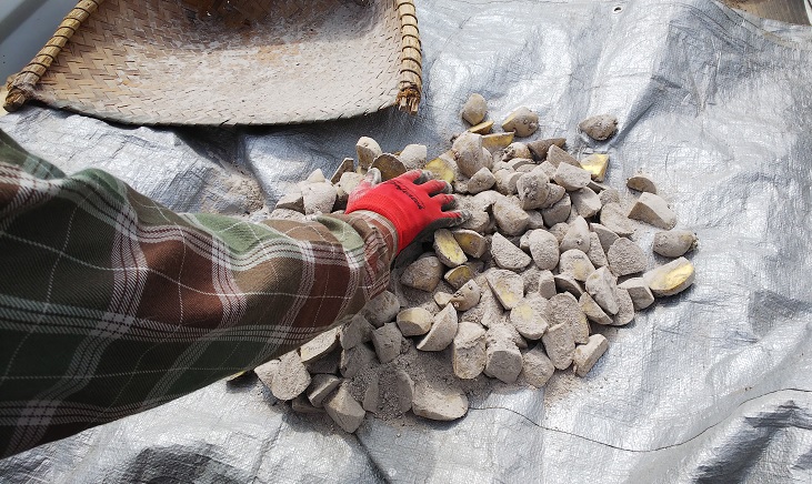 次に、灰を混ぜます。灰を混ぜることにより切り口から腐るのを防ぎます。