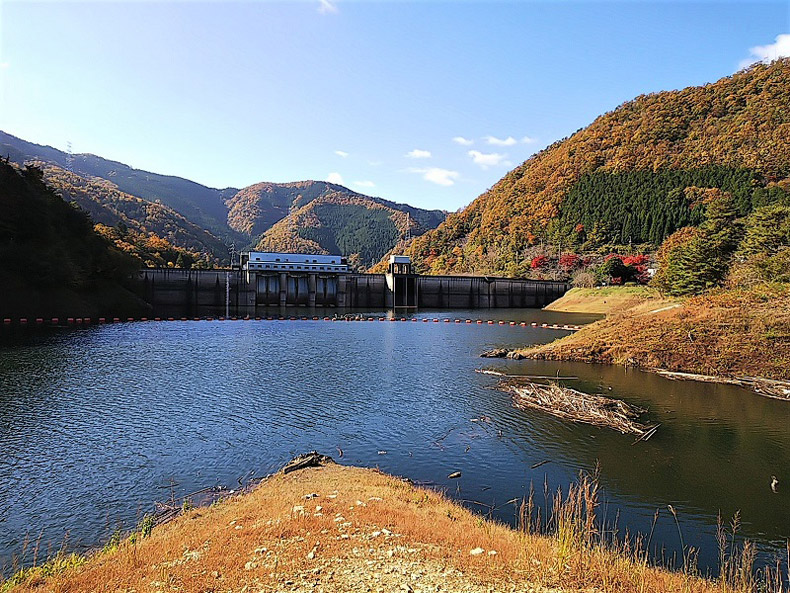 足がすべって、あやうく、ダム湖に落ちるところでした。