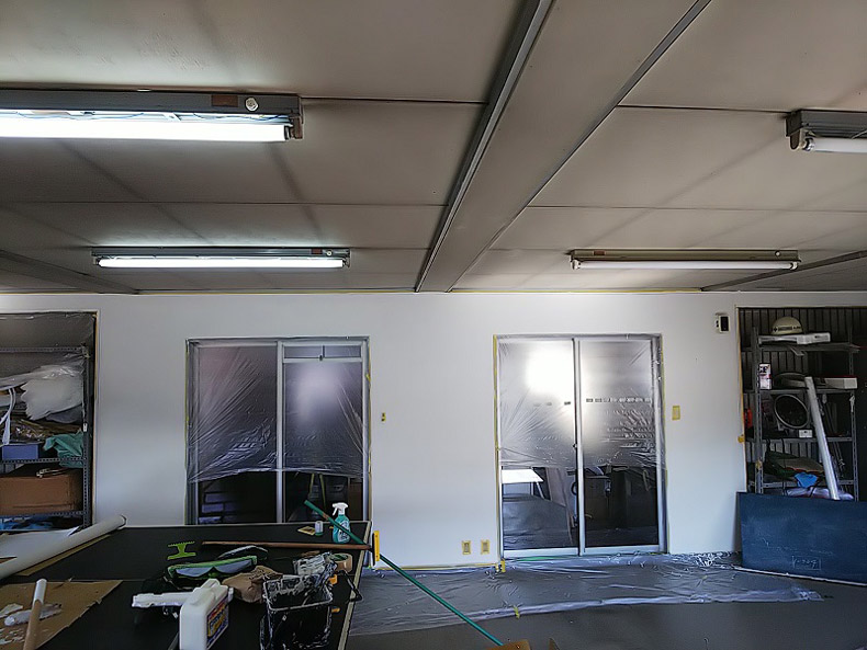 汚れていた壁と天井の汚れを、ペンキで覆い隠したので、