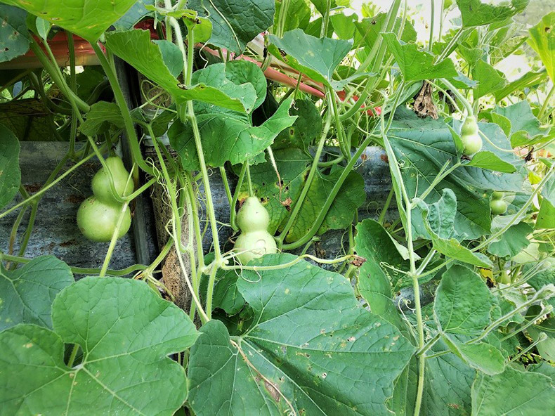 父が老人会の手芸教室で、ひょうたんの置物を作るために栽培しているようです。