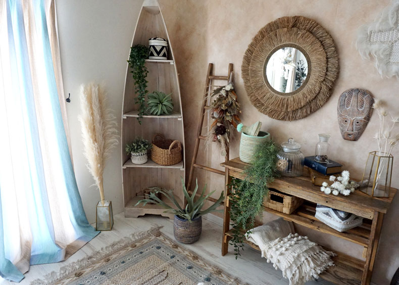 植物やマクラメの雑貨、他バリから仕入れているアイテムとの相性がとても良いので、グリーンたっぷりのボタニカルスタイルや、エスニックな要素がつまったBOHOスタイルのコーディネートのアクセントにおすすめです。