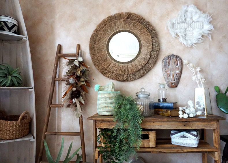 BOHOスタイルやボタニカルスタイルなどのコーディネートのアクセントにとてもおすすめのミラーです。