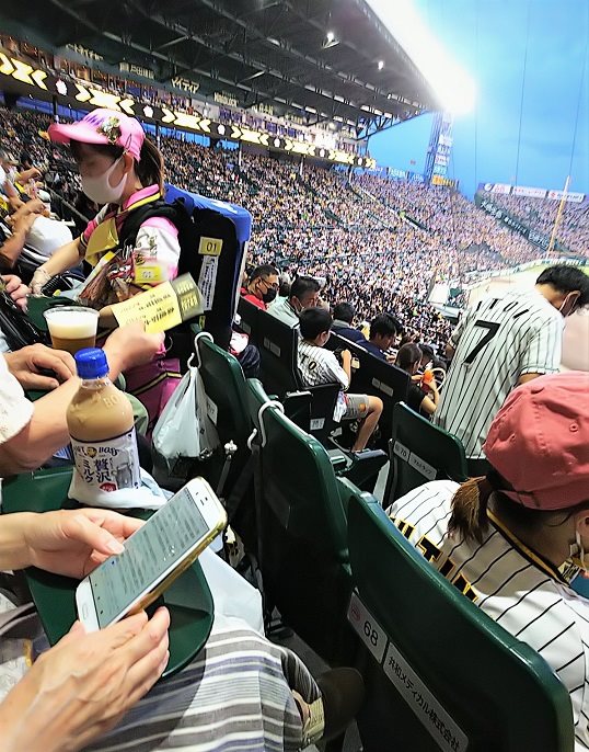 みんな阪神の攻撃中は応援バットをたたきながら応援しています。