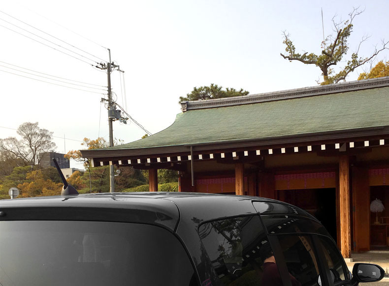 ▼本殿とは別に<車の祈祷専用>の拝殿があります。車のまま乗り付けできて便利です。