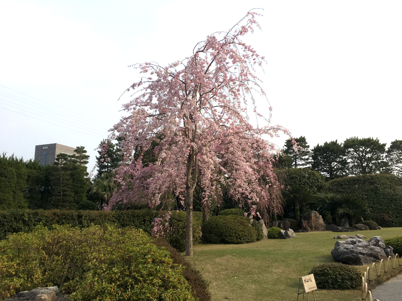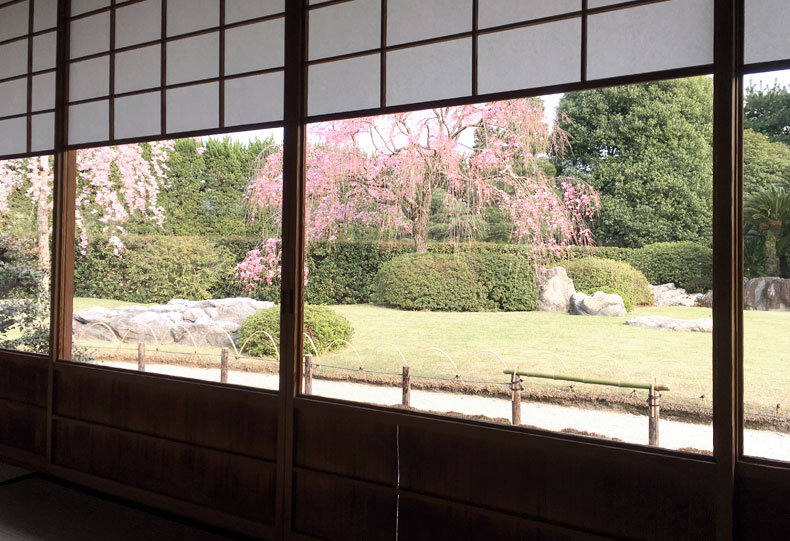 ▼窓越しに美しい枝垂れ桜を眺めながら、一服いただきました!
