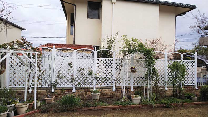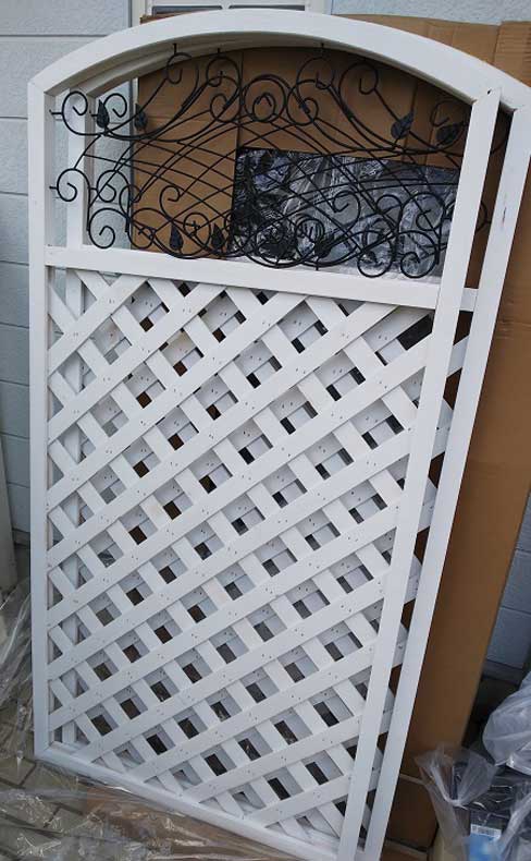 新しいフェンスは通販で探しまくっていたら、上部がアーチ状で、白塗のものがあったので、