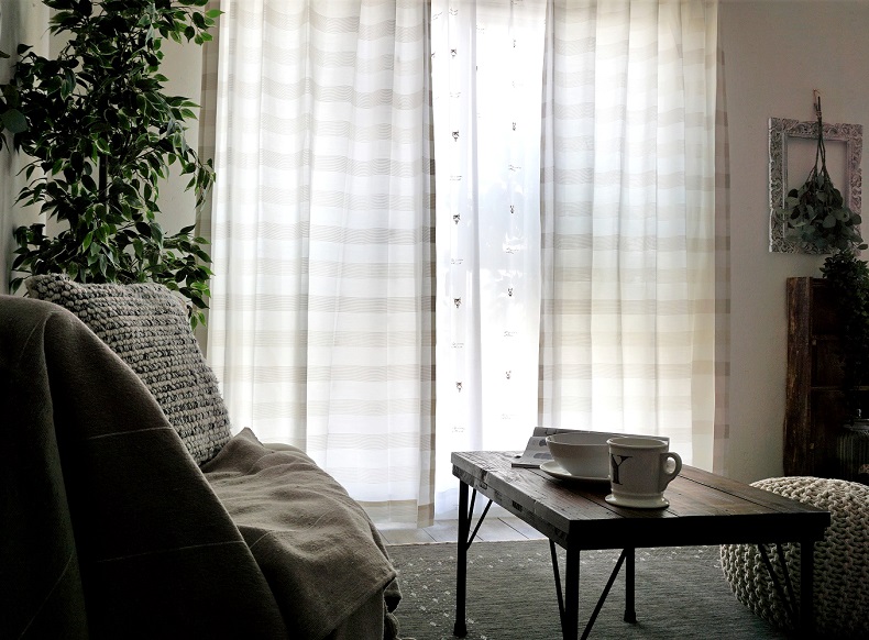 新発売の≪ ニャンパラリ ≫カーテンはナチュラルな横ストライプのデザインで、ベーシックな3色展開でご用意しています。シンプルなデザインなのでお部屋にコーディネートしやすく、≪ レースニャンパラリ ≫の横ストライプのデザインともマッチしますよ!