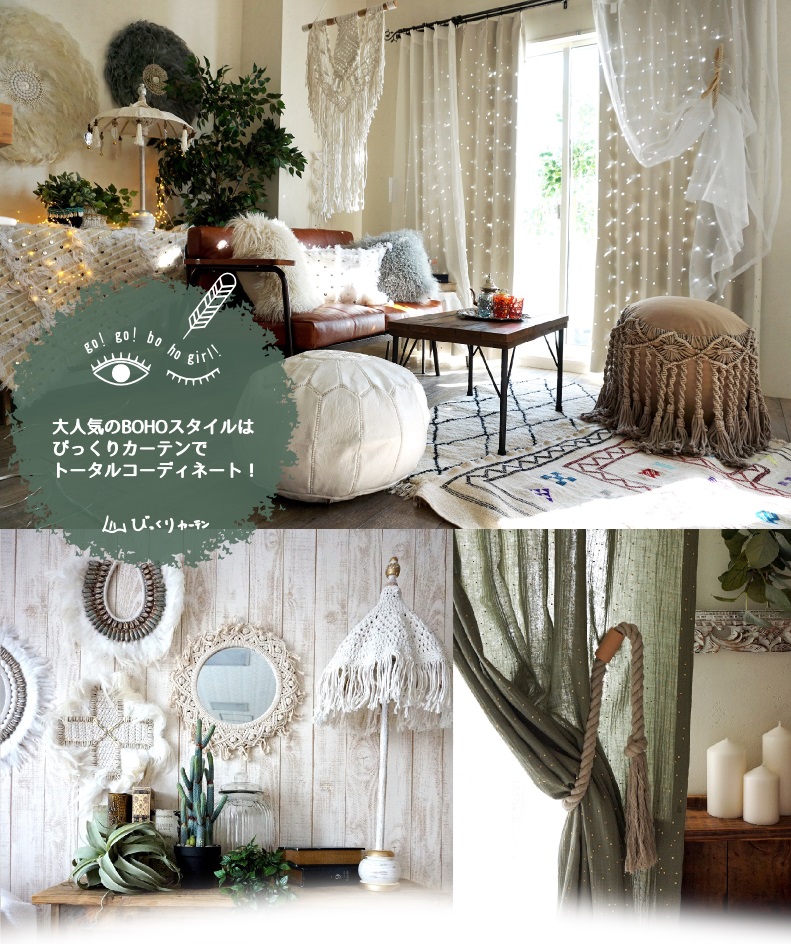 新ブランド『 GO!GO! BO HO GIRL! 』ではBOHOスタイルを取り入れてみたいという方におすすめのカーテンやコーディネートアイテムをご用意いたしました!