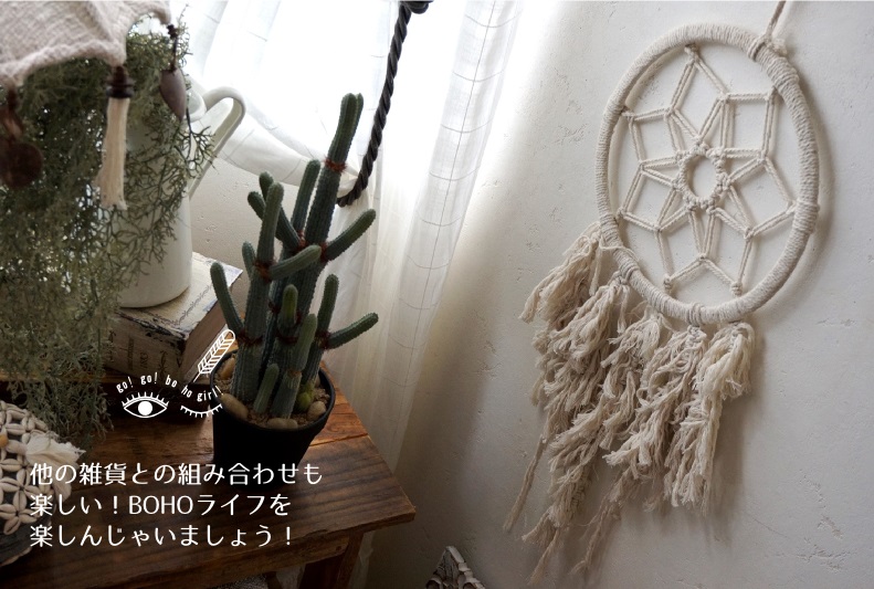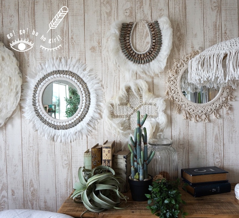 壁面のちょっとした場所に取り入れられるウォールデコレーションはBOHOスタイルの必須アイテムです。フェザーやマクラメ、ウッドなどのナチュラルな素材を使用しハンドメイドで作られたデコレーション。ポコポコやふわふわ、ボサボサとしたボヘミアンのテクスチャーを加えてコーディネートをお楽しみください!ヽ(^o^)丿*゚+.☆。