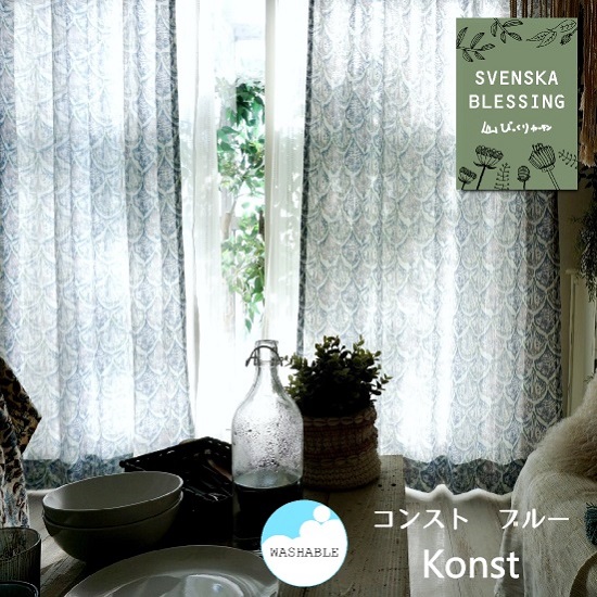 【SVENSKA BLESSING】スヴェンスカ・ブレッシング びっくりカーテンのオリジナルデザイン北欧カーテン<コンスト ブルー>