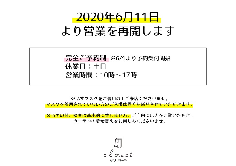 お客様には《完全ご予約制》《ご来店時のマスク着用》のお願いをさせていただいております。