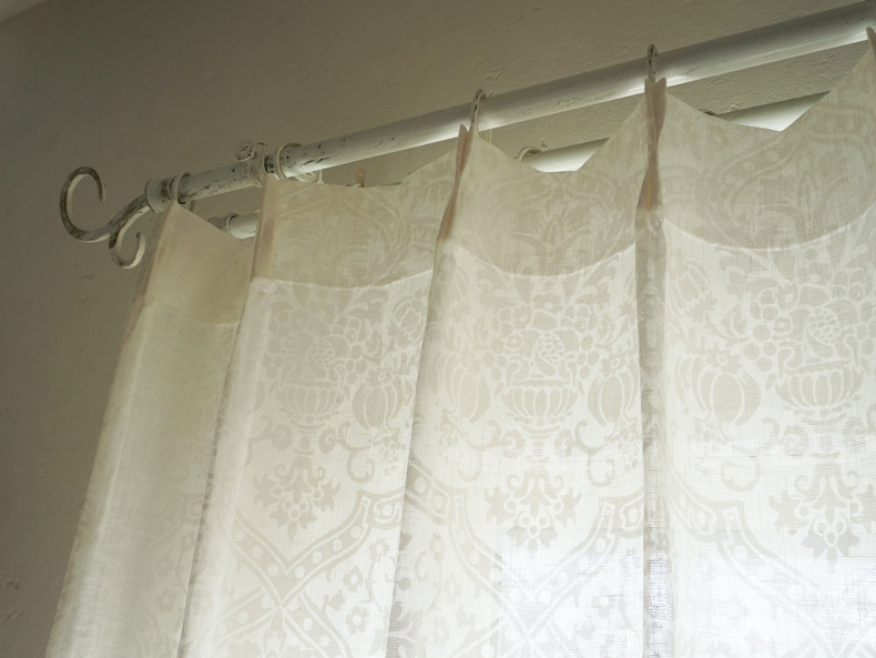 大胆な柄になりますが、程よい主張感があり、風合いを合わせて麻の厚地カーテンと合わせていただくのがおすすめです(*’▽’)