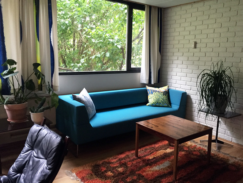 北欧らしいソファのブルーを中心にして色のトーンが合っているからなのか・・この感性はかっこいいです!