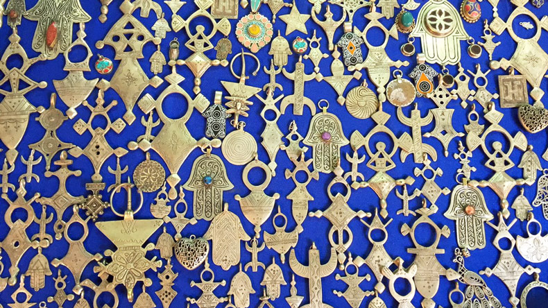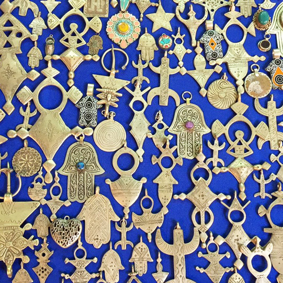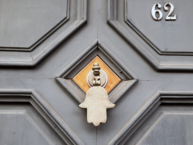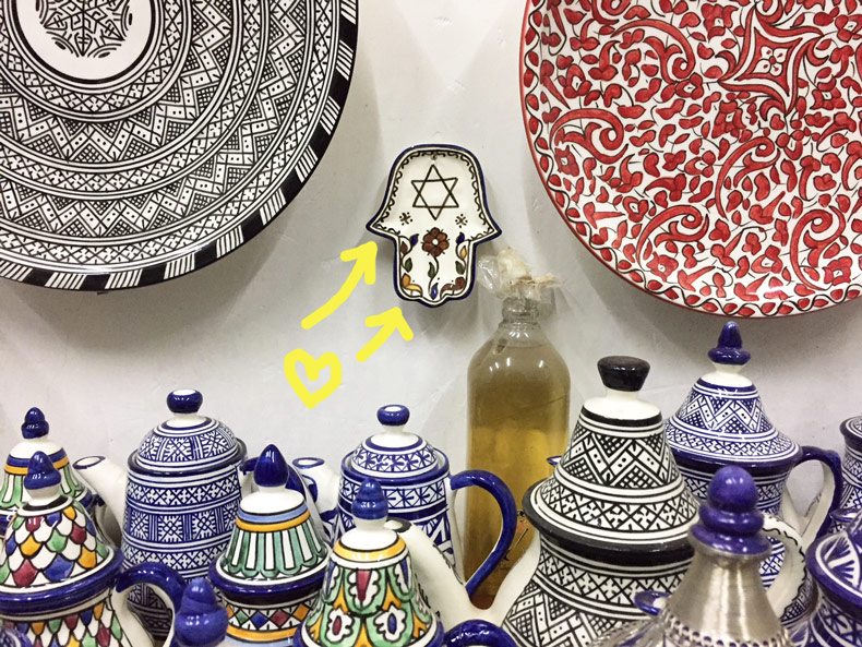 手のひらというインパクトのあるデザインにまず目を奪われたこともあるのですが、モロッコでは生活の中の身近なモチーフとしていろいろな場所で見かけるので、それがとても興味深く気が付くと探してしまうようになっていました。