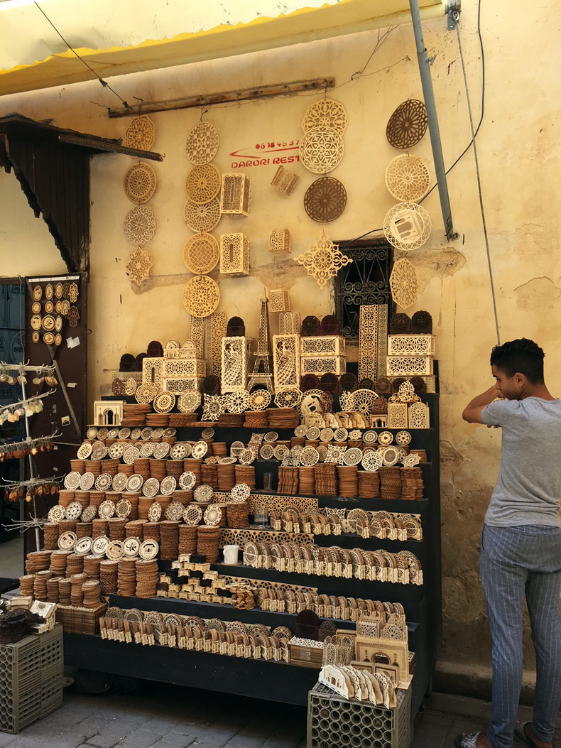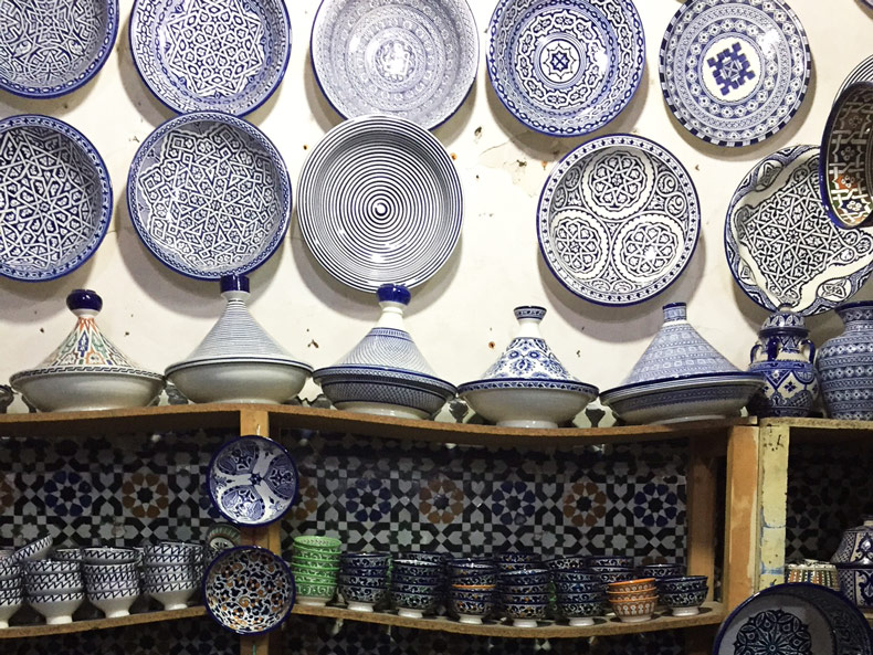 続いてはモロッコの陶器屋さんです。フェズブルーと呼ばれる青い絵付けの陶器が特徴的で人気があるそうです。