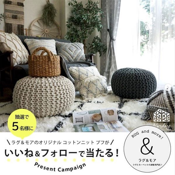 インスタのプレゼント企画投稿にフォロー&いいねをしていただいた方の中から、抽選で大人気のニットプフをプレゼントという嬉しい企画です。すでにフォローしていただいている方ももちろん対象になりますので、ぜひご応募ください。
