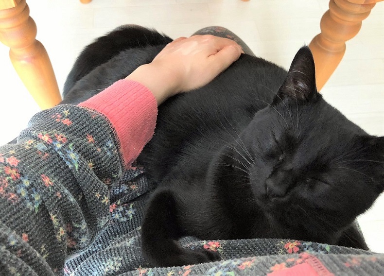 ↑膝の上で甘えるココちゃん。目をつぶるとお地蔵さんのような顔になるので、とても有難い気持ちになります。
