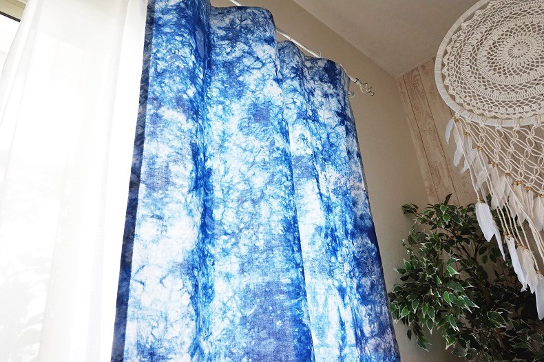 ↓藍染カーテン<indigo music-インディゴ ミュージック->の横にぶら下がっているのがドリームキャッチャー(※未発売品)です。
