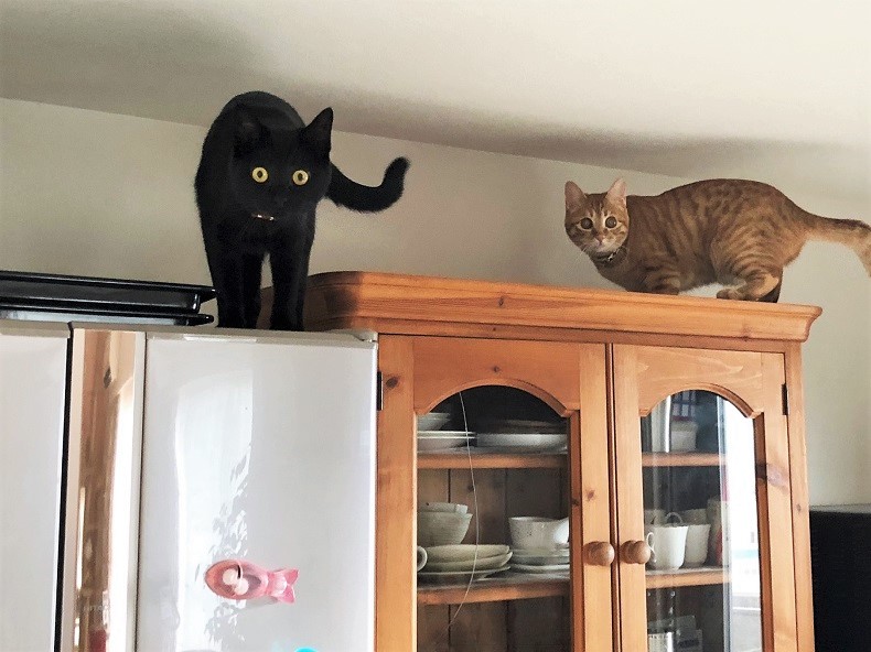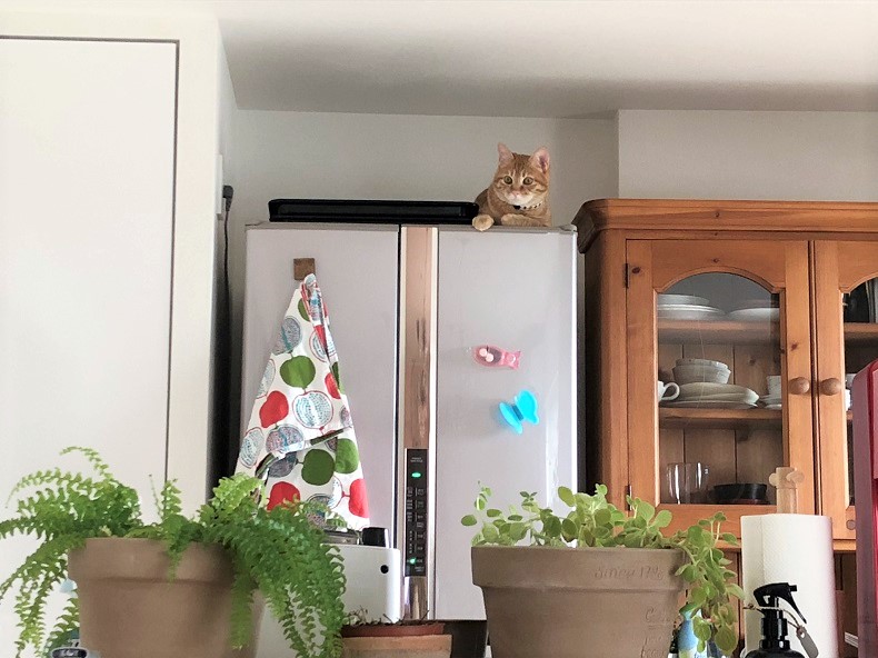 しかし、上記お写真のように、トラちゃんが食器棚の上にいることはちょっとした奇跡でもあります。