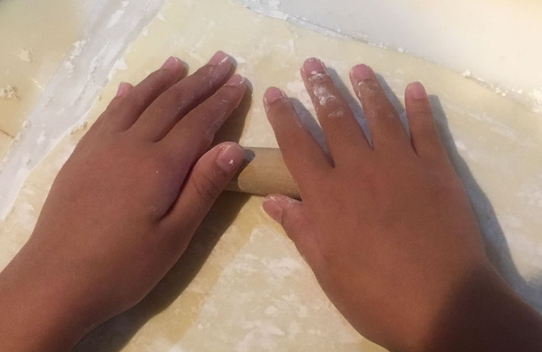 ▲生地がダレてしまわないよう、手早く・・・が、つい遊んでしまう・・・