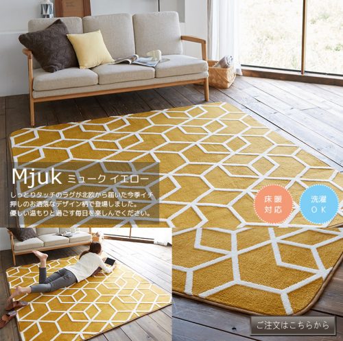 こちらのミューク イエロー/グレー北欧雑貨のようなおしゃれテイストが特徴です。5mm厚のウレタンを使用しているのでクッション性があり、やさしい手ざわりと上質な温もりを体感して頂けます。