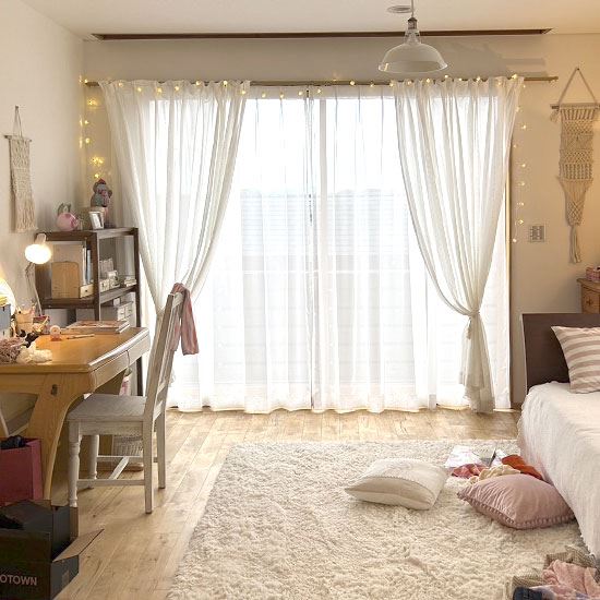 ちなみに、“レース オン レース” スタイルとは、レースカーテンの上にレースカーテンを重ねて使用するスタイルのこと。