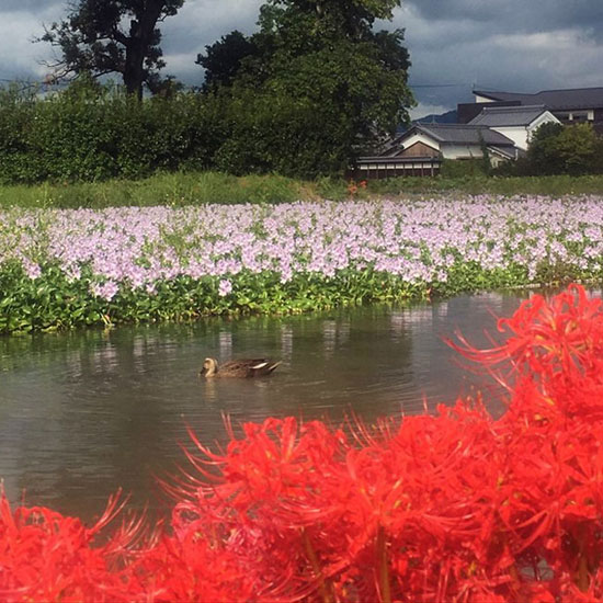 季節柄、彼岸花(曼殊沙華)もまさに花を添えています。