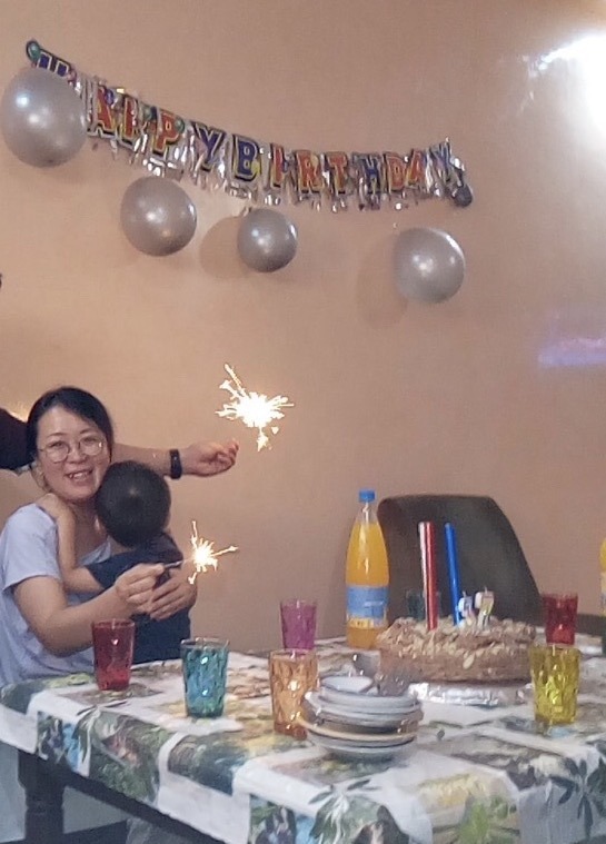 日曜日の夕方、彼女たちの住むアパートに何気なく遊びに行くと、部屋のテレビからバースデーソングが流れ、みんなに「Happy birthday!!」とお迎えしてもらいました。